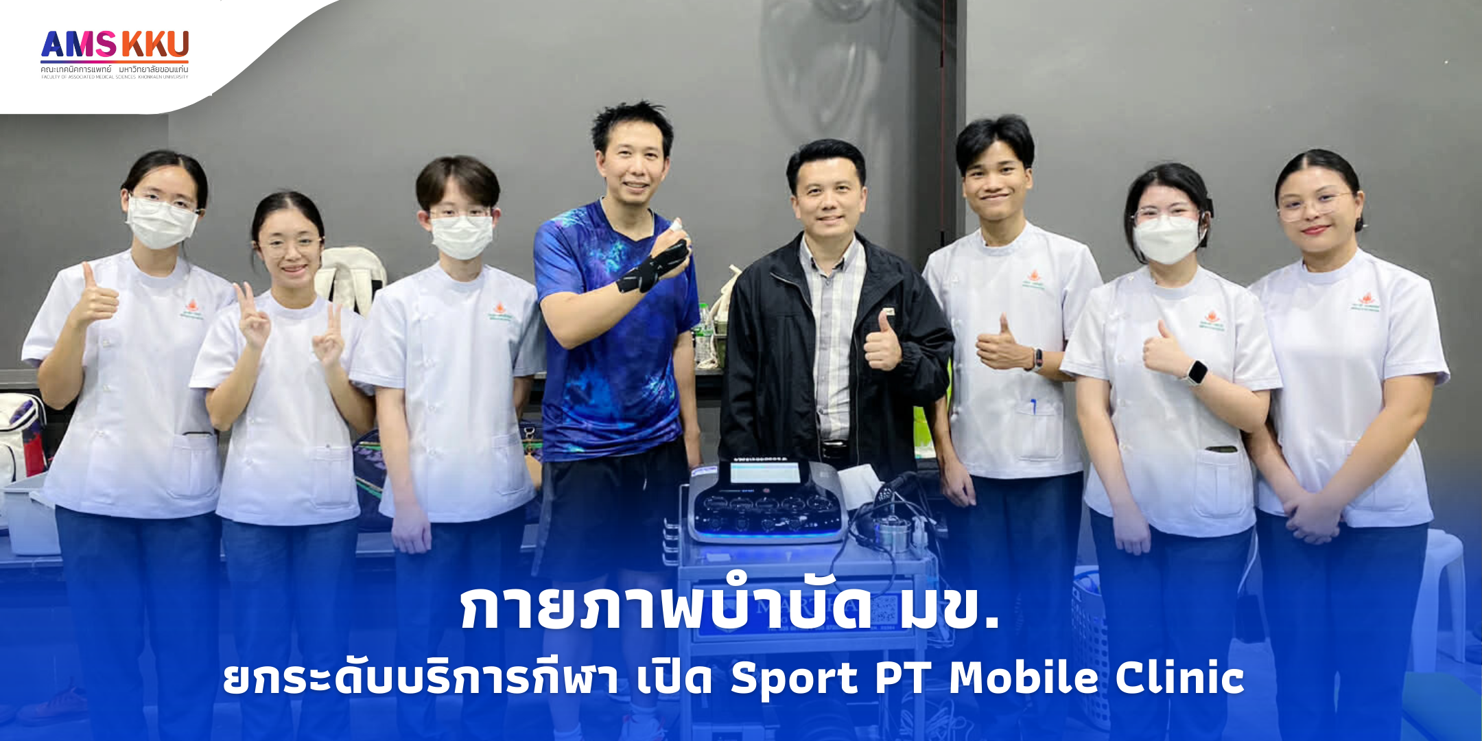 อ่านต่อเมื่อวันที่ 5–8 มกราคม พ.ศ. 2569 ระหว่างเวลา 17.00–20.00 น. สาขาวิชากายภาพบำบัด คณะเทคนิคการแพทย์ มหาวิทยาลัยขอนแก่น นำโดยคณาจารย์ นักกายภาพบำบัด และนักศึกษากายภาพบำบัดทั้งระดับปริญญาตรีและบัณฑิตศึกษากว่า 70 คน ได้ร่วมกันเปิด Sport PT Mobile Clinic เพื่อให้บริการทางกายภาพบำบัดแก่นักกีฬาที่ได้รับบาดเจ็บจากการฝึกซ้อมและการแข่งขัน รวมถึงการบาดเจ็บที่สัมพันธ์กับสมรรถนะด้านการกีฬาและการออกกำลังกาย กิจกรรมดังกล่าวจัดขึ้น ณ KKU Sport Complex กองการกีฬา มหาวิทยาลัยขอนแก่น เพื่อเตรียมความพร้อมนักกีฬามหาวิทยาลัยขอนแก่นในการเข้าร่วมการแข่งขันกีฬามหาวิทยาลัยแห่งประเทศไทย และ ณ สนาม PS Badminton จังหวัดขอนแก่น ร่วมกับสโมสร Northeast Academy เพื่อดูแลนักกีฬาทั้งระดับอาชีพและสมัครเล่น รวมกว่า 100 ราย