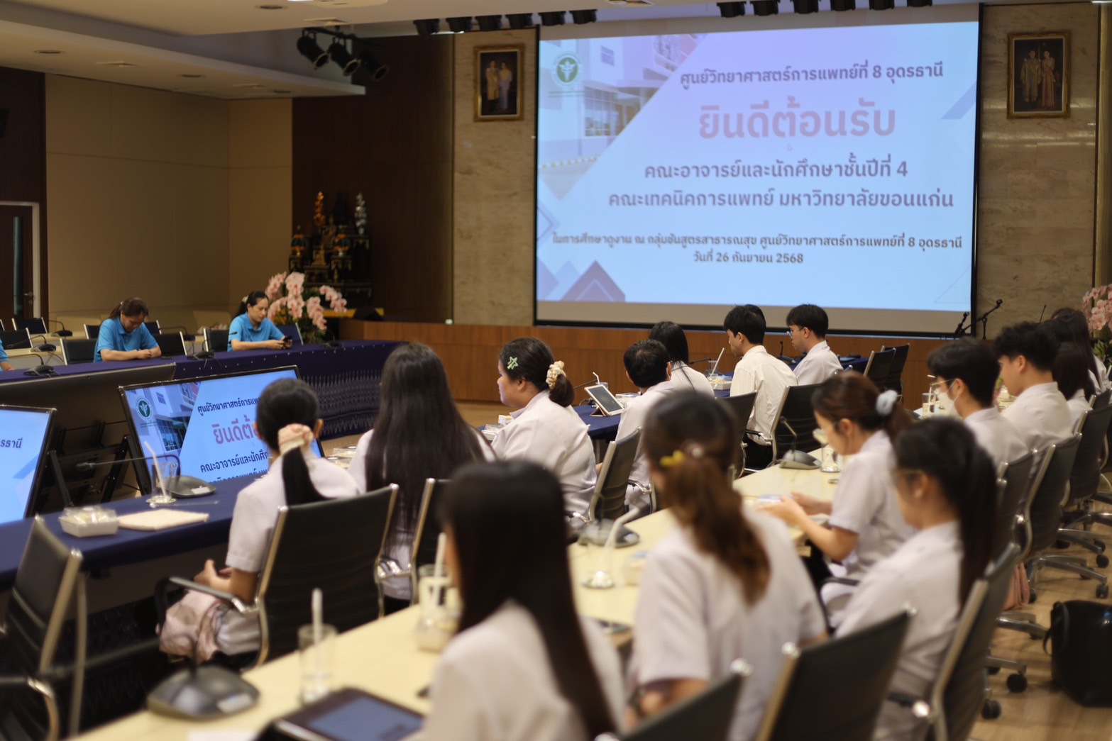 วันที่ 26 กันยายน 2568 นักศึกษาชั้นปีที่ 4 คณะเทคนิคการแพทย์ มหาวิทยาลัยขอนแก่น ในรายวิชา ปฏิบัติการการแพทย์แม่นยำ ภายใต้การสอนของ ผศ.ดร.ทนพญ.อมรรัตน์ จำเนียรทรง ได้เดินทางไปศึกษาดูงาน ณ ศูนย์วิทยาศาสตร์การแพทย์ที่ 8 จังหวัดอุดรธานี