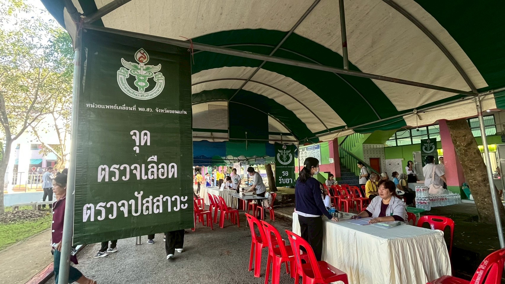 เมื่อวันศุกร์ที่ 17 ตุลาคม 2568 รศ.ทนพญ.ยุพา เอื้อวิจิตรอรุณ, อ.ดร.กรรณิการ์ กัวหา, นักเทคนิคการแพทย์ และบุคลากรคณะเทคนิคการแพทย์ ได้ร่วมออกตรวจและให้คำปรึกษาด้านสุขภาพแก่ประชาชน ร่วมกับหน่วยแพทย์อาสาสมเด็จพระศรีนครินทราบรมราชชนนี (พอ.สว.) และโครงการบำบัดทุกข์ บำรุงสุข สร้างรอยยิ้มให้กับประชาชน ณ โรงเรียนบ้านใหม่โสกส้มกบ ตำบลบ้านใหม่ อำเภอสีชมพู จังหวัดขอนแก่น โดยมีนายประจวบ รักแพทย์ รองผู้ว่าราชการจังหวัดขอนแก่น เป็นประธานในพิธี