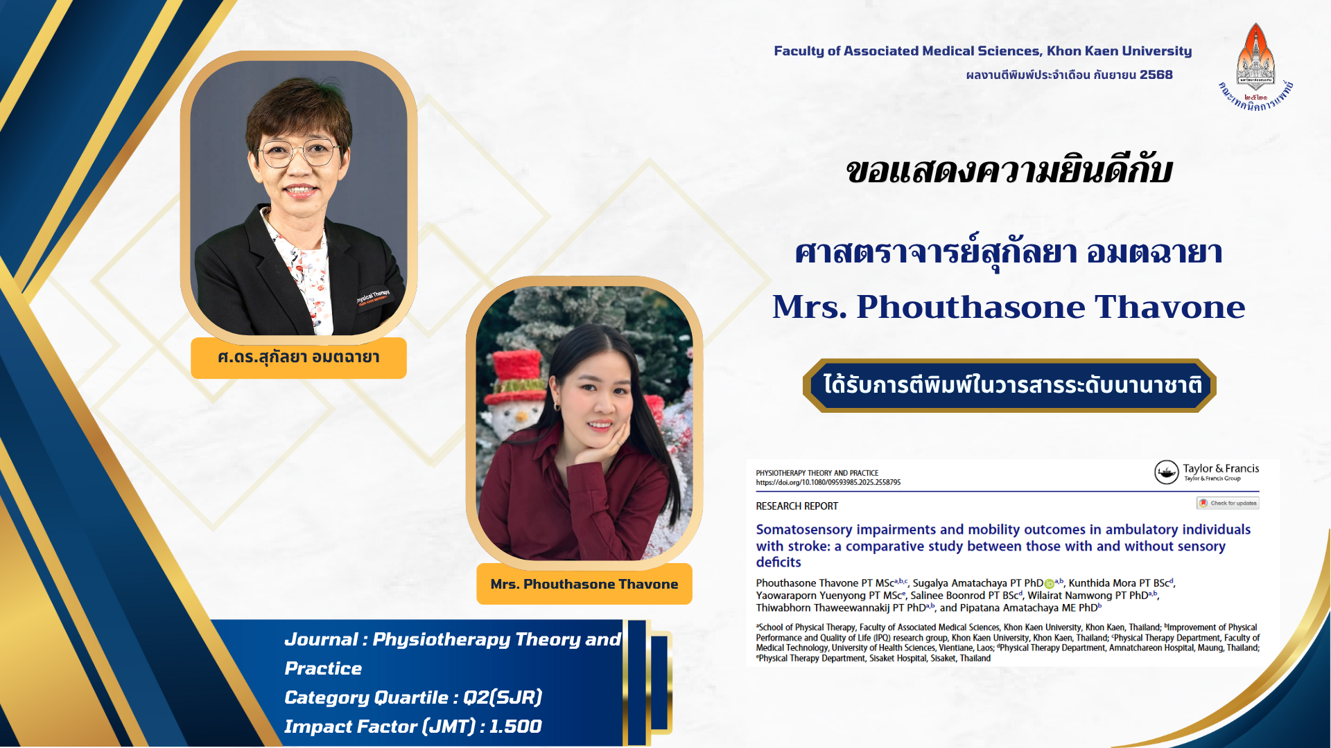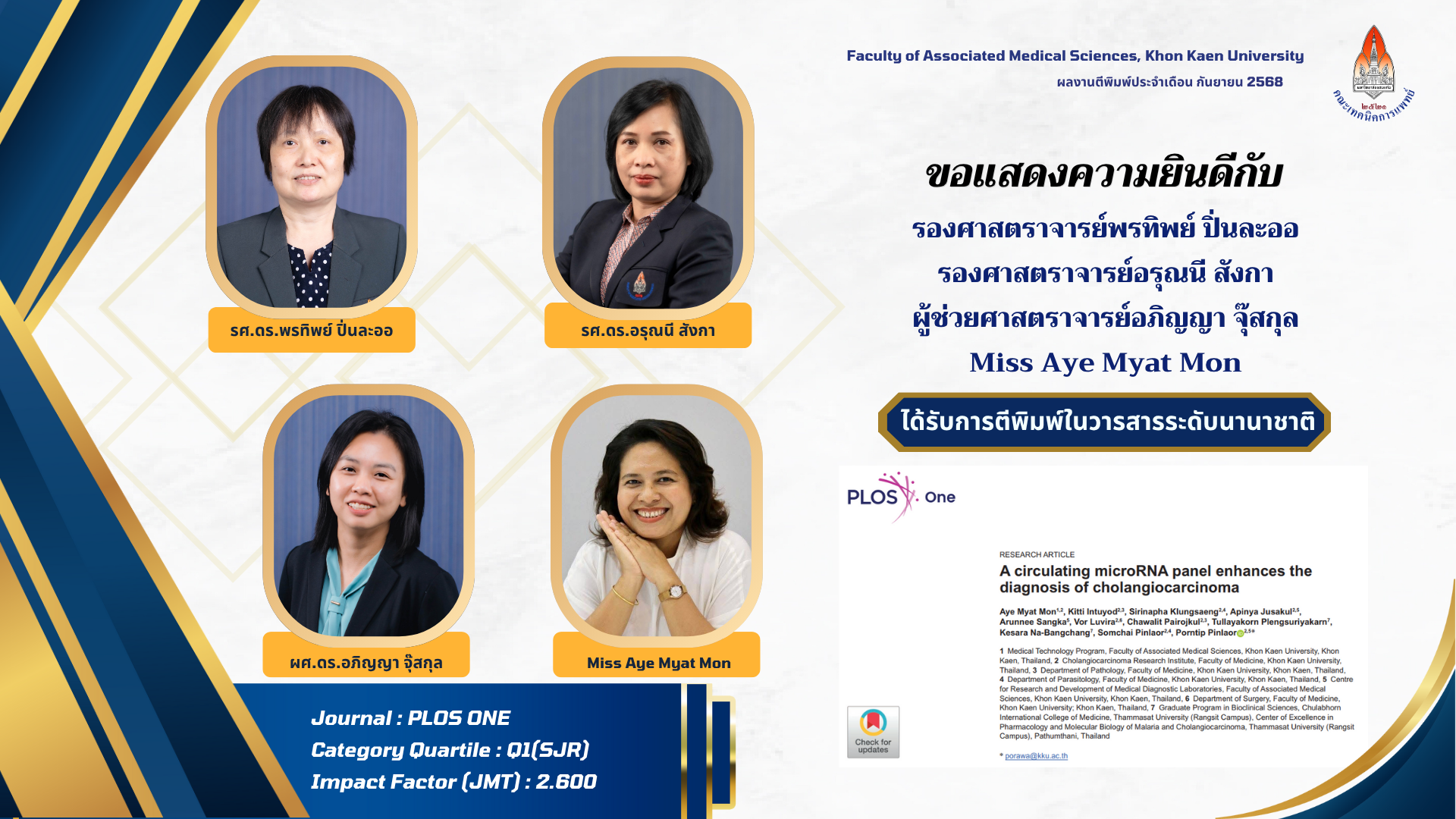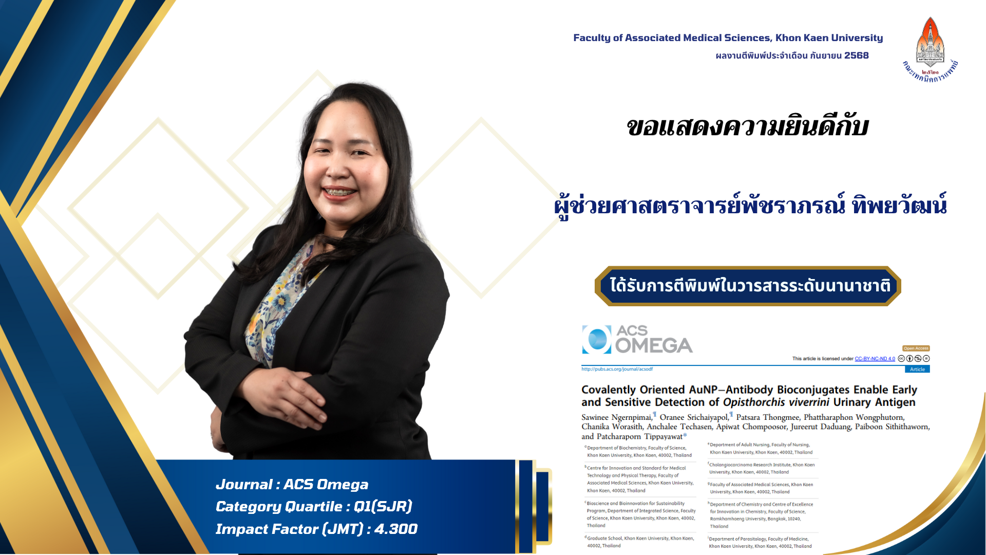 คณะเทคนิคการแพทย์ มหาวิทยาลัยขอนแก่น ขอแสดงความยินดีกับผู้ได้รับการตีพิมพ์ผลงานวิจัยในวารสารระดับนานาชาติ ประจำเดือน กันยายน 2568