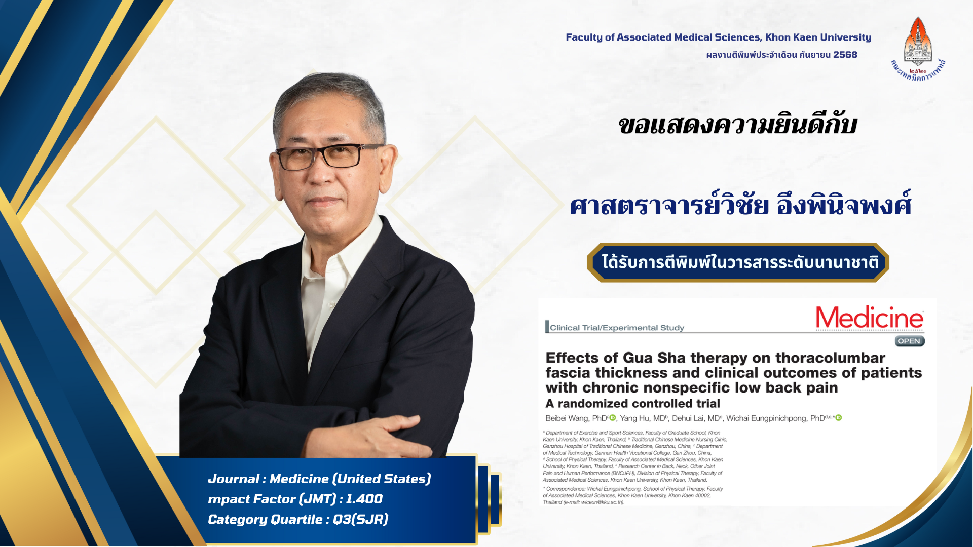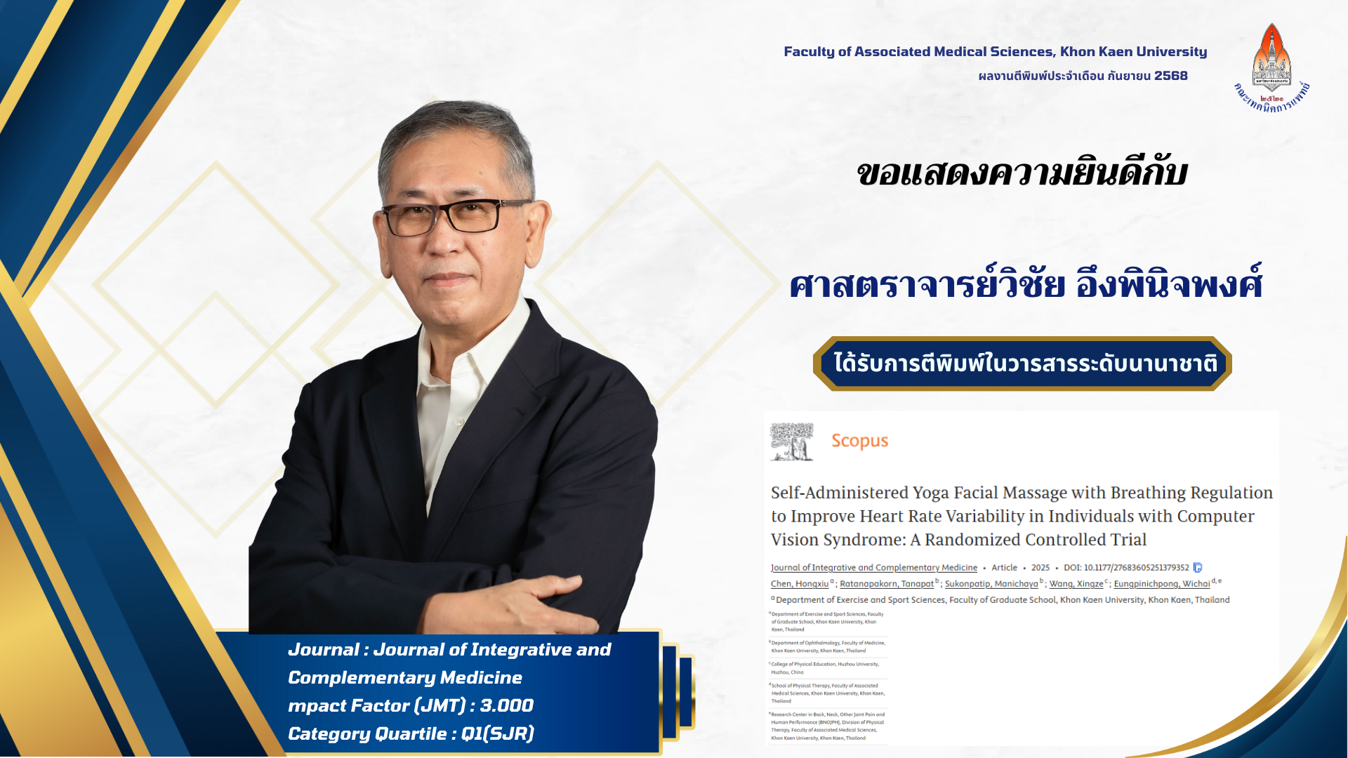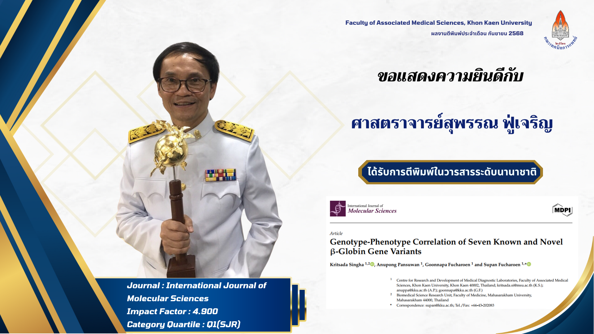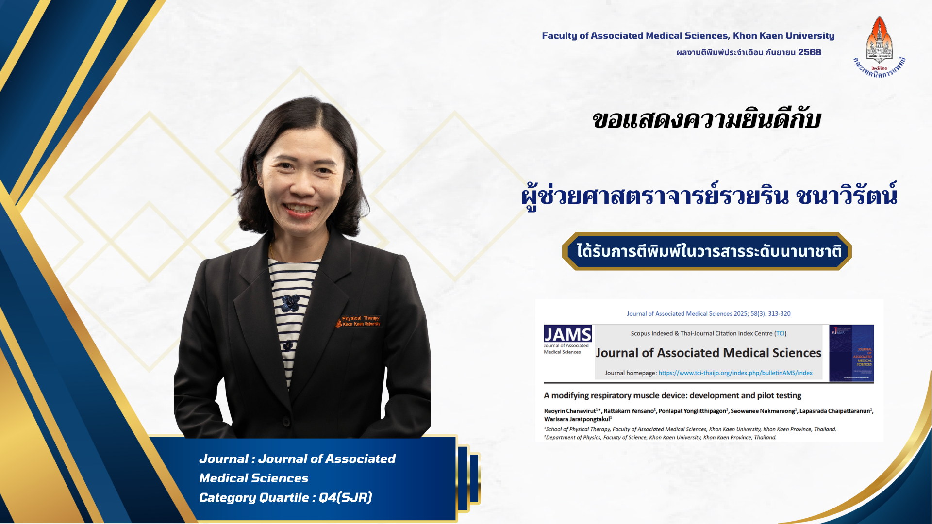 คณะเทคนิคการแพทย์ มหาวิทยาลัยขอนแก่น ขอแสดงความยินดีกับผู้ได้รับการตีพิมพ์ผลงานวิจัยในวารสารระดับนานาชาติ ประจำเดือน กันยายน 2568