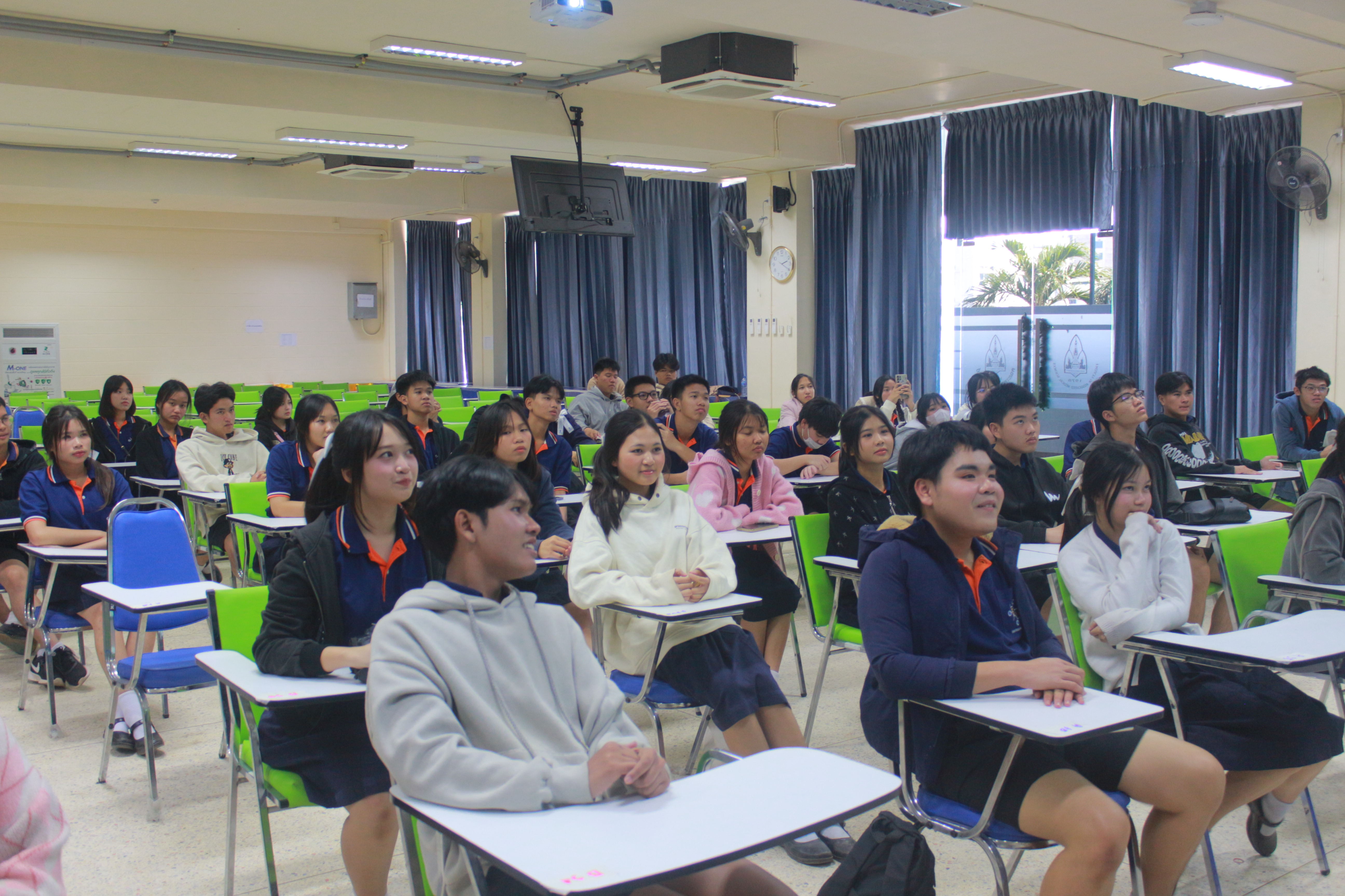 ในการนี้ ผู้ช่วยศาสตราจารย์ ดร.อัฐวุฒิ ไชยบุญเรือง ผู้ช่วยคณบดีฝ่ายการต่างประเทศและดิจิทัล ให้เกียรติกล่าวต้อนรับคณะครูและนักเรียน พร้อมแนะนำภาพรวมของคณะฯ