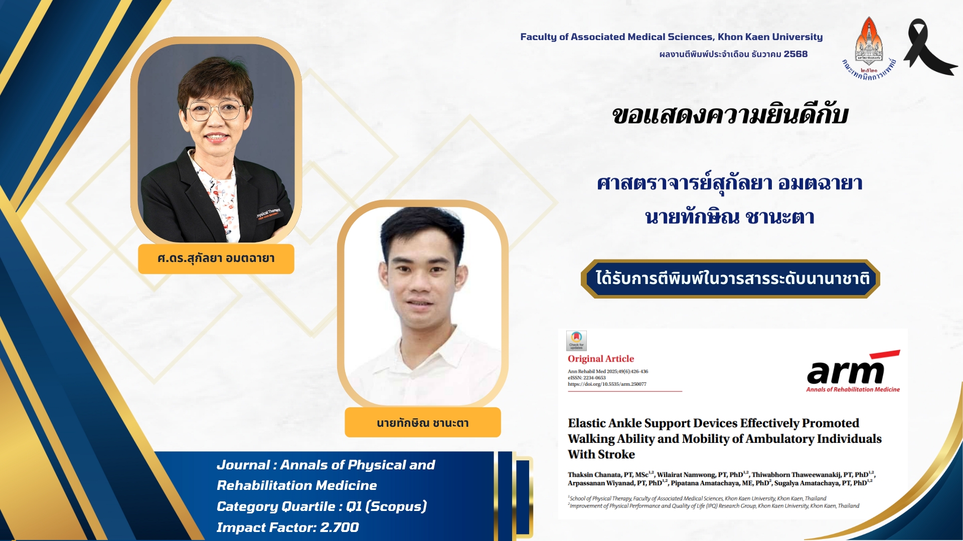 ชื่อเรื่อง Elastic Ankle Support Devices Effectively Promoted Walking Ability and Mobility of Ambulatory Individuals With Stroke