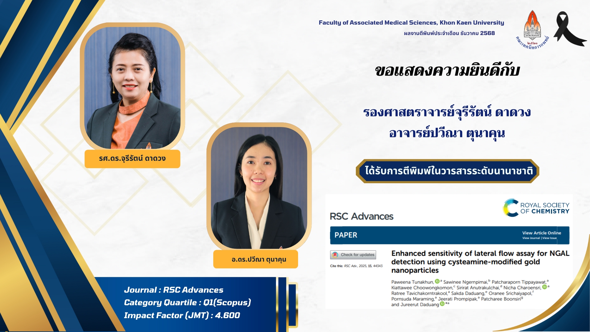 ชื่อเรื่อง Enhanced sensitivity of lateral flow assay for NGAL detection using cysteamine-modified gold nanoparticles