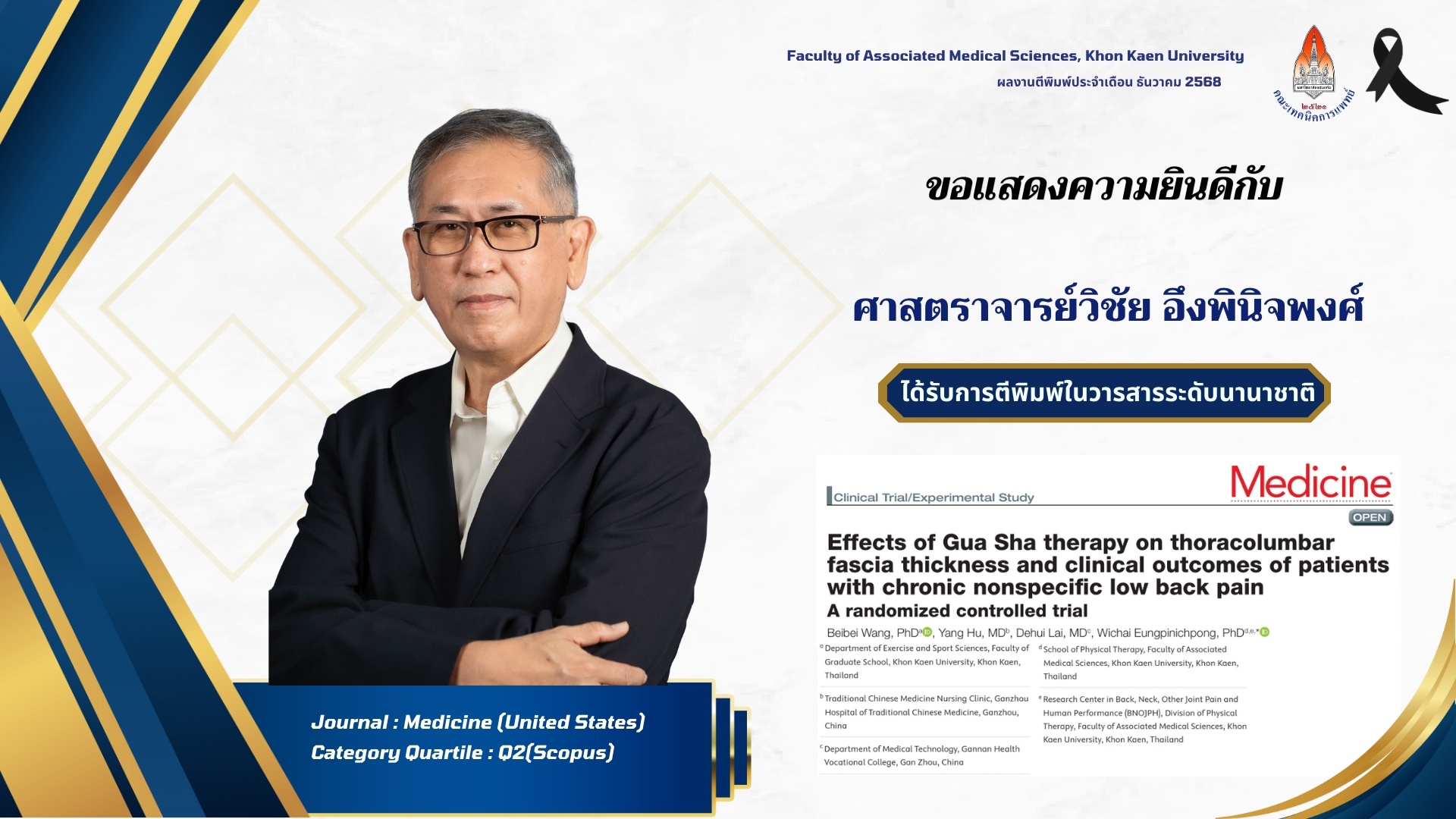 ชื่อเรื่อง Effects of Gua Sha therapy on thoracolumbar fascia thickness and clinical outcomes of patients with chronic nonspecific low back pain: A randomized controlled trial