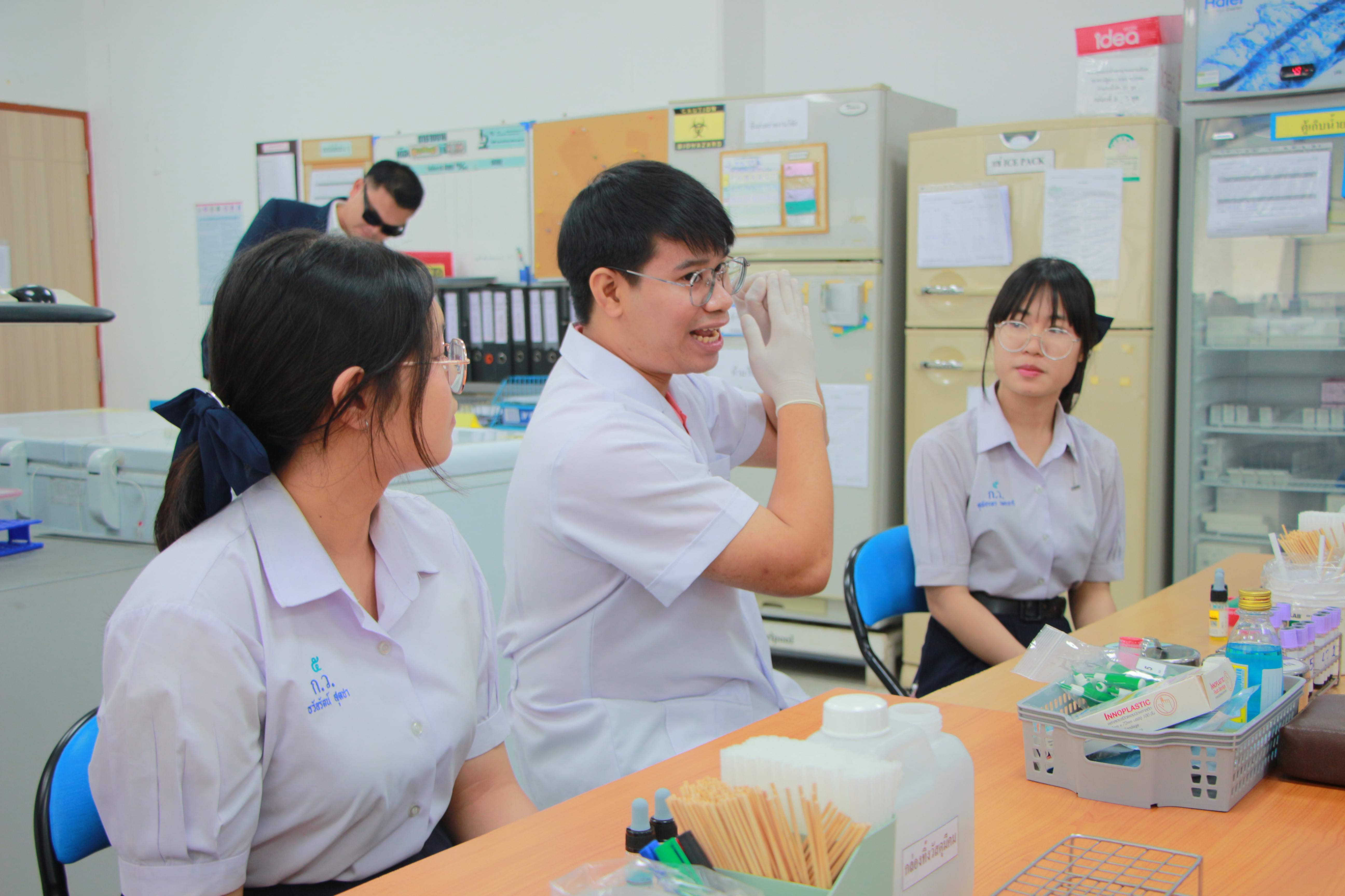 จากนั้น หัวหน้างานห้องปฏิบัติการ และหัวหน้างานฝ่ายวิชาการและพัฒนานักศึกษา ได้ให้ข้อมูลเกี่ยวกับรูปแบบการจัดการเรียนการสอนในห้องปฏิบัติการ ตลอดจนเกณฑ์การรับเข้าศึกษา เพื่อให้นักเรียนได้รับข้อมูลที่ถูกต้องและครบถ้วนในการวางแผนศึกษาต่อ