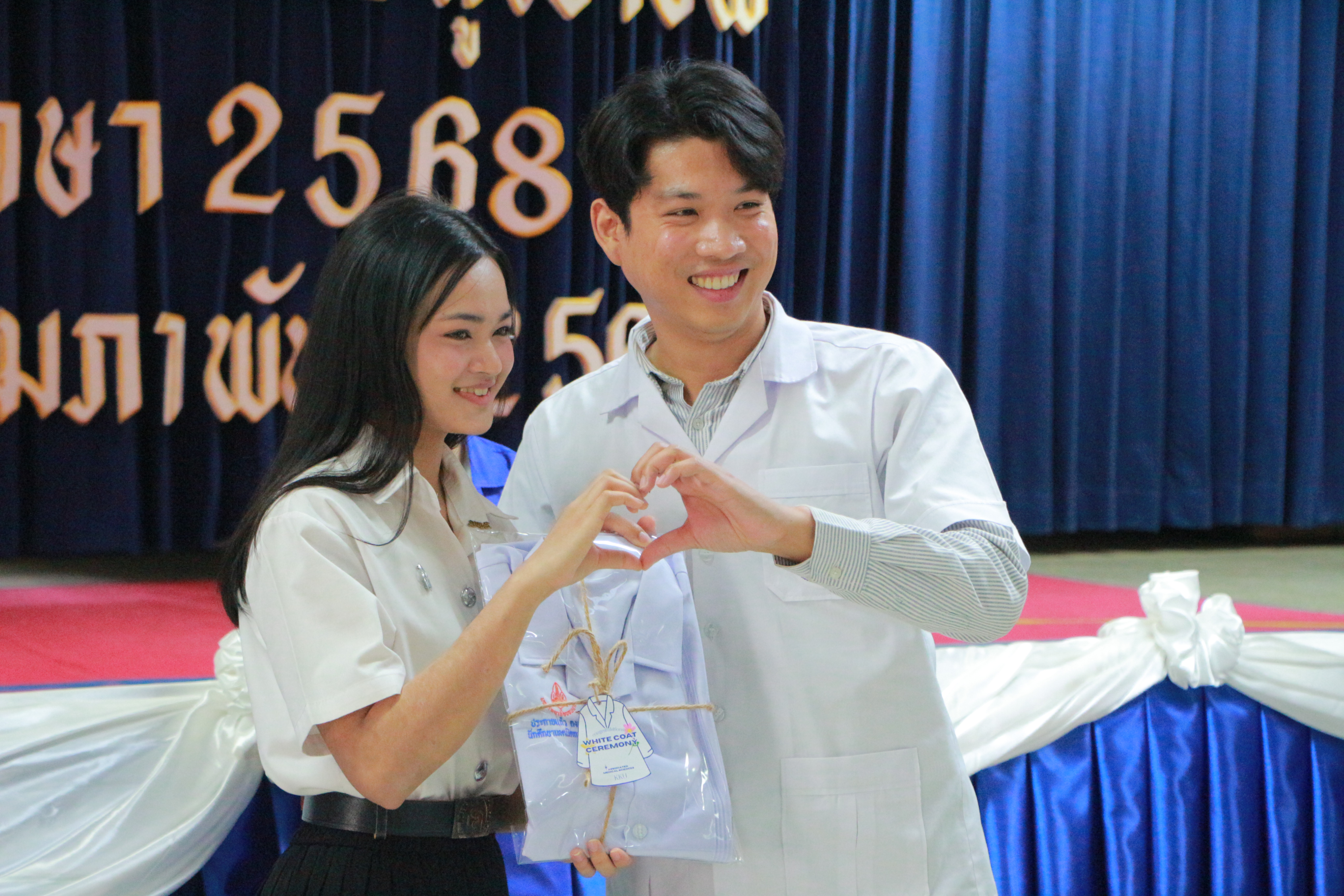ภายในกิจกรรมยังมีการบรรยายพิเศษในหัวข้อ “Level Up: Beyond the White Coat” ได้รับเกียรติจากคุณสิรินทร์ ประเสิรฐสังข์ ผู้ประกาศข่าวและผู้ก่อตั้ง Shining Star Studio สถาบันพัฒนาบุคลิกภาพขอนแก่น มาร่วมสร้างแรงบันดาลใจ พร้อมถ่ายทอดแนวคิดว่า “เสื้อกาวน์” เปรียบเสมือนการอัปเลเวลในชีวิต ที่มาพร้อมความคาดหวัง ความรับผิดชอบ และการเติบโตทั้งด้านวิชาการและบุคลิกภาพ