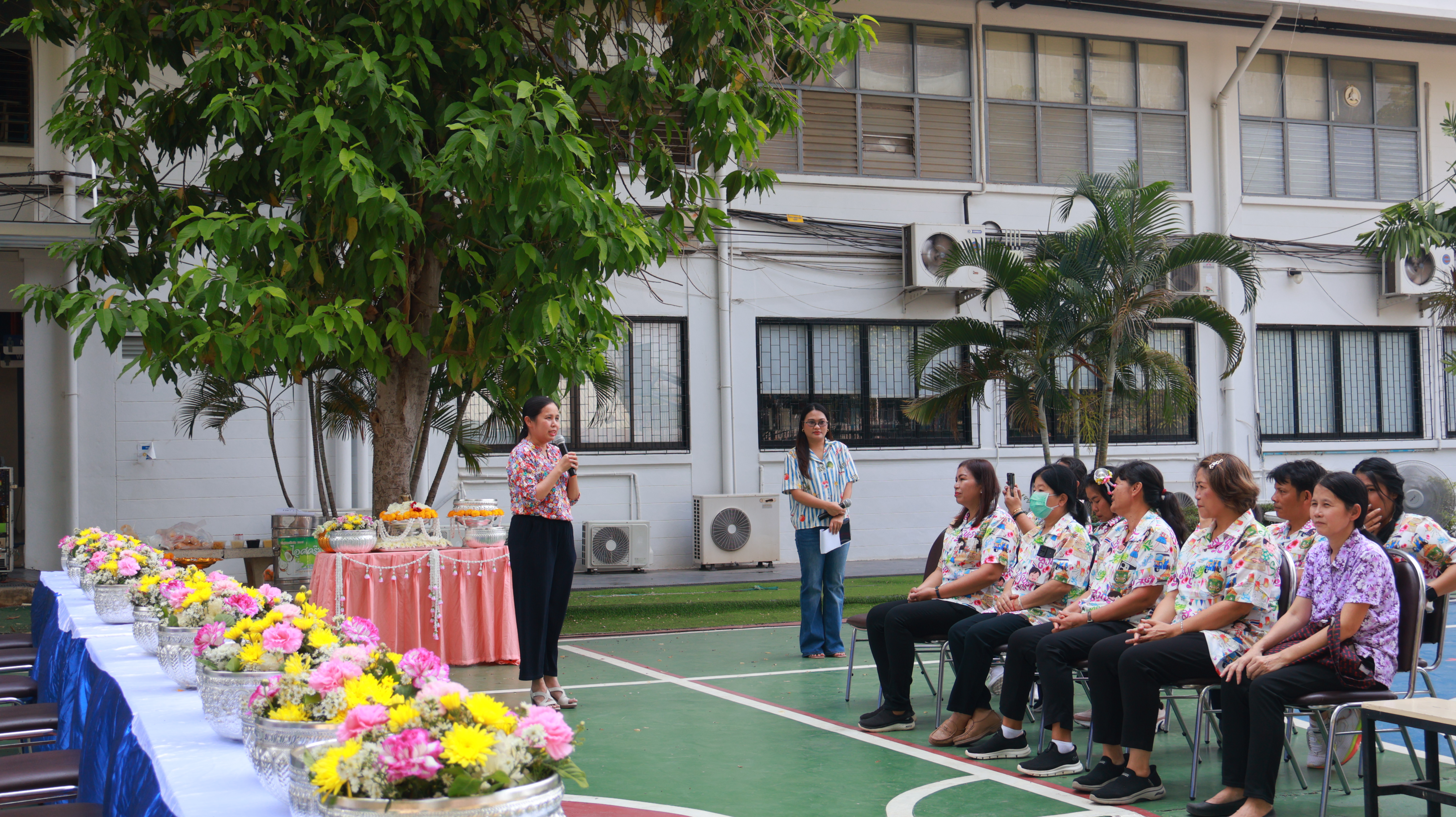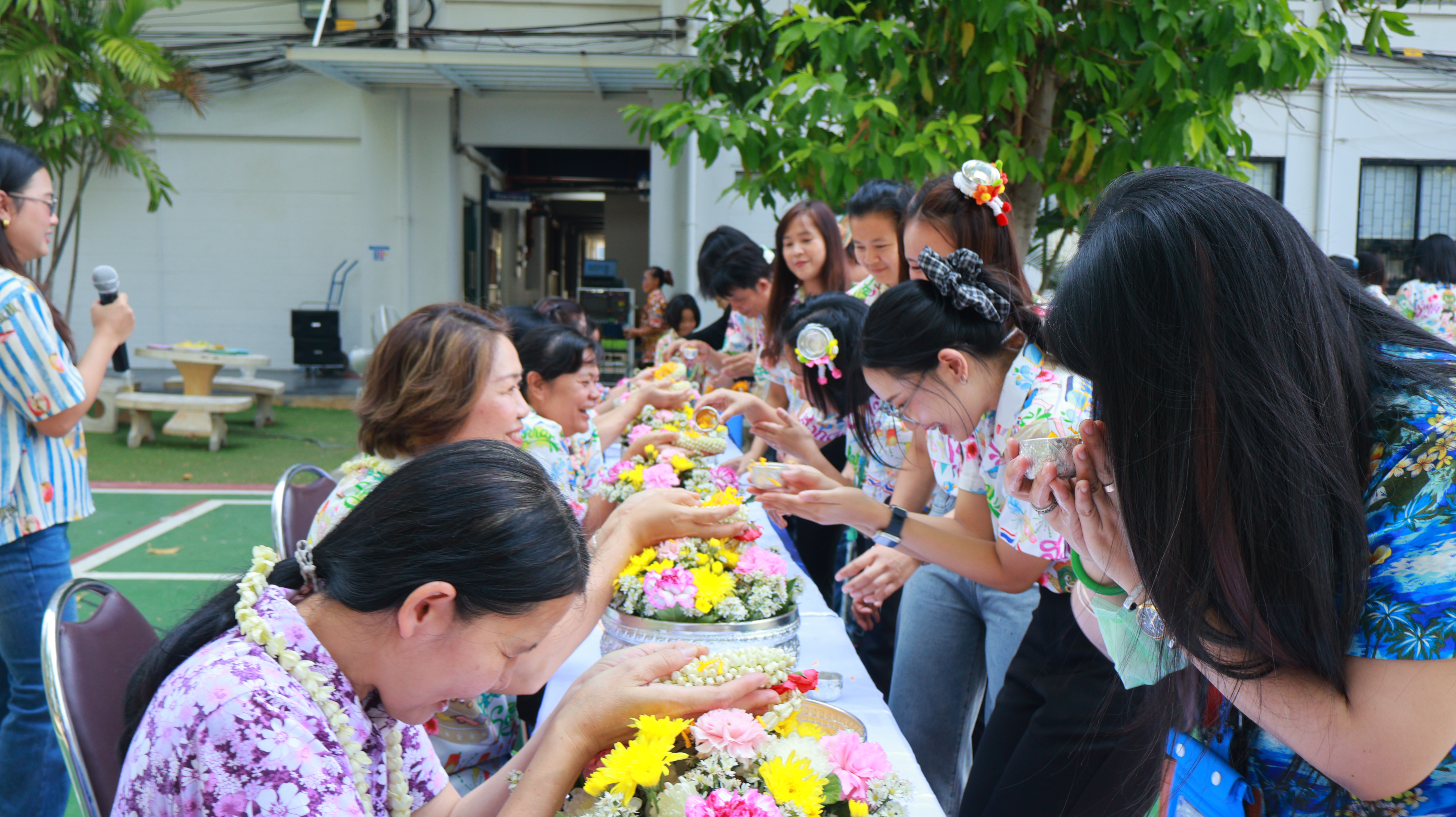 บรรยากาศภายในงานเป็นไปอย่างอบอุ่นและเป็นกันเอง แม้อากาศจะค่อนข้างร้อน แต่บุคลากรทุกคนยังคงให้ความสนใจเข้าร่วมกิจกรรมอย่างคึกคัก โดยพร้อมใจกันสวมใส่เสื้อลายดอกสีสันสดใส สะท้อนถึงความเป็นเทศกาลสงกรานต์ได้อย่างชัดเจน