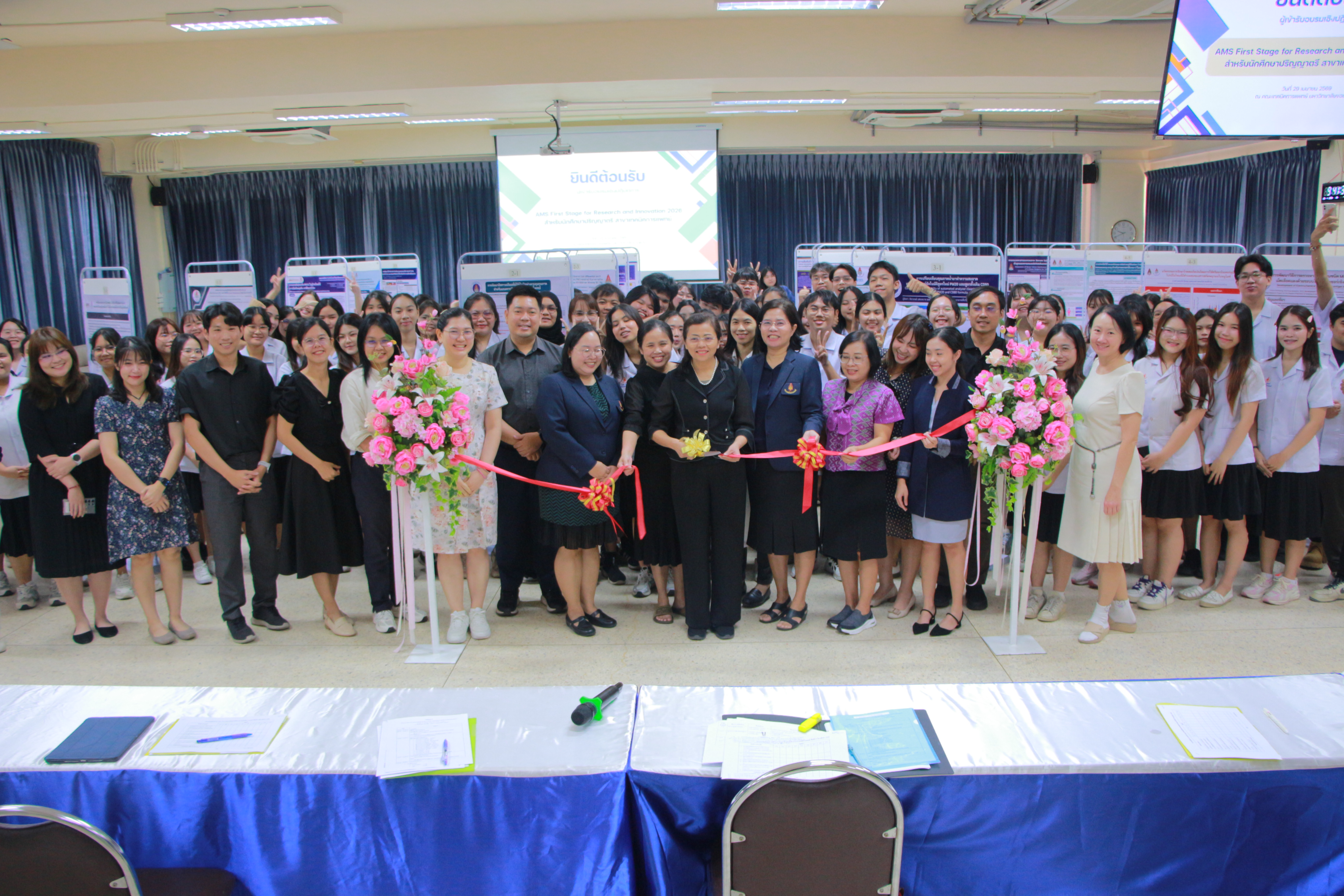 เมื่อวันที่ 29 เมษายน 2569 เวลา 09.00–13.00 น. ณ ห้องประชุม 42 ปี ชั้น 1 อาคาร 2 คณะเทคนิคการแพทย์ มหาวิทยาลัยขอนแก่น คณะเทคนิคการแพทย์ได้จัดโครงการ AMS First Stage สำหรับนักศึกษาสาขาวิชาเทคนิคการแพทย์ ชั้นปีที่ 4 โดยมีวัตถุประสงค์เพื่อส่งเสริมทักษะด้านการวิจัยและการนำเสนอผลงานทางวิชาการของนักศึกษา